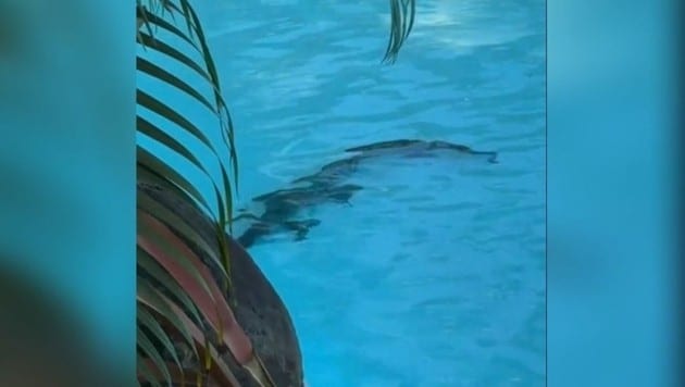 Krokodil macht den Pool eines Luxushotels unsicher