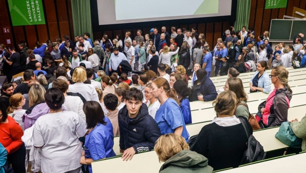 Die Temperatur gleicht einer Sauna: Der große Hörsaal im Landesklinikum ist bis auf den letzten Zentimeter gefüllt. Auf den Treppen, bis knapp vor die Eingangstür – überall lauschen Betroffene, tun ihren Frust kund und beratschlagen, wie sie sich jetzt Gehör verschaffen können.