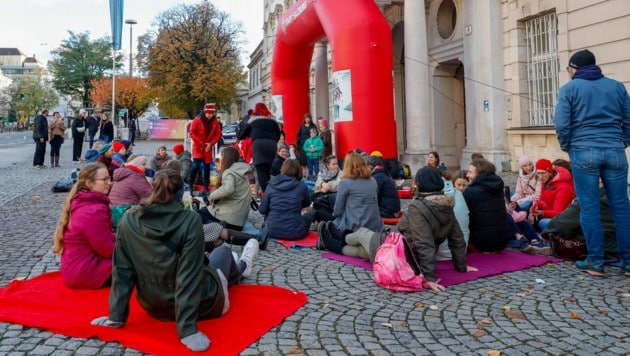 Da lagen sie plötzlich. Direkt beim Schloss Mirabell bot sich Freitagabend ein ungewöhnlicher Anblick. Rund 30 Frauen lagen dort am späten Freitagnachmittag trotz des windigen Wetters auf roten Polstern, gingen mit Decken und Tüchern in den Sitzstreik. Hintergrund der Aktion: Der „Equal Pay Day“ – jener Tag, der auf die Einkommensunterschiede zwischen Männern und Frauen aufmerksam macht. In Salzburg wird er bereits am 25. Oktober erreicht. Ab dann arbeiten Frauen genaugenommen gratis.