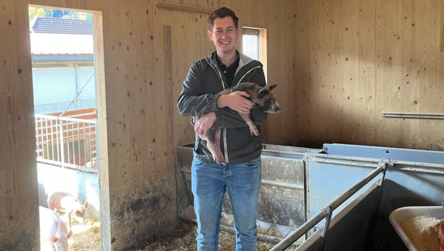 Lehrer und Landwirt mit Herz: Michael Skuk aus Neuhaus züchtet auf seinem „Lanzlhof“ Durok-Schweine, die man sogar „leasen“ kann. Heuer ist er sogar als „Landwirt des Jahres“ nominiert! Die „Krone“ besuchte den 27-Jährigen auf seinem Hof.