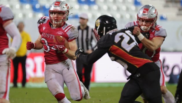 Österreichs Team zeigte zu Beginn eine durchwachsene Vorstellung, Deutschland scorte die ersten beiden Punkte der Partie. Kicker Oskar Herz und Runningback Tobias Bonatti brachten die von Quarterback Alexander Reischl angeführten Österreicher bis zur Pause aber 9:2 voran. In der zweiten Halbzeit trug Nitzlnader den Ball nach einem missglückten Snap der deutschen Offensive in die gegnerische Endzone (16:2). Deutschland verkürzte, Ex-NFL-Spieler Sandro Platzgummer stürmte aber gleich zu Beginn des vierten Viertels im ersten Spielzug zum Touchdown (22:9).