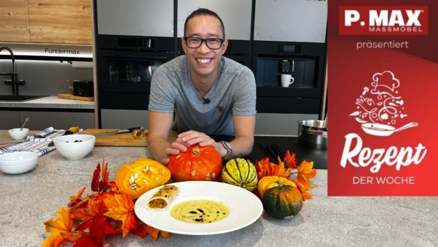 Kürbissuppe einmal anders. Mit Peter Lehners Rezept wird die herbstliche Kürbissuppe auf ein ganz neues Geschmacksniveau gehoben. Die Kokosmilch, das Zitronengras und der Ingwer verleihen der Kürbissuppe 2.0 den Extrakick am Gaumen. Dazu gibt es einen köstlichen Kürbisstrudel. Unbedingt ausprobieren!