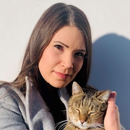 Melanie Wachter, Geschäftsführerin des Wiener Tierkrematoriums, mit ihrem Kater „Tiger“