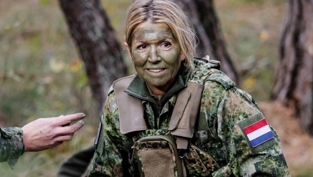 Camouflage statt Designer-Robe, Tarnfarbe statt Glamour-Make-up: So hat man die niederländische Königin Máxima noch nie gesehen! Bei einem Besuch beim Militär tarnte sie sich von Kopf bis Fuß.