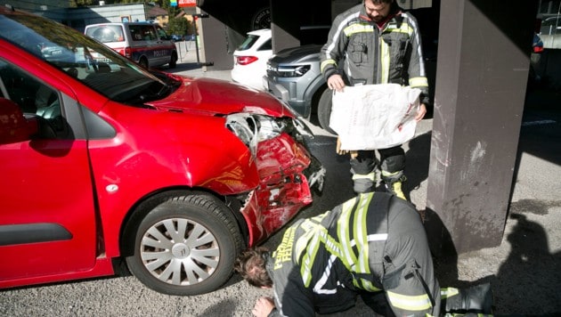 Der Senior kracht mit seinem roten Pkw gegen eine Betonsäule. Der Lenker des zweiten Fahrzeugs kam auf einem freien Parkplatz zum stehen. Glücklicherweise waren rundum die Unfallstelle keine Fußgänger unterwegs, sodass lediglich die beiden Autos beschädigt wurden.