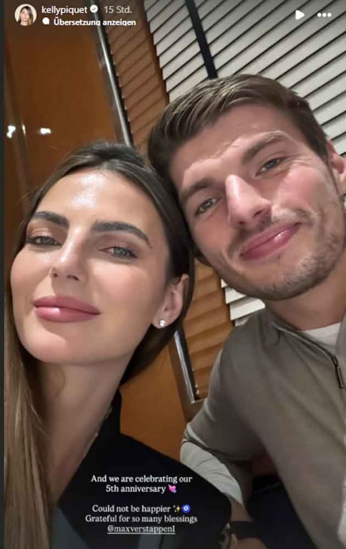 Happy Jahrestag! Die Glückwünsche gehen raus an Max Verstappen. Der vierfache Formel-1-Weltmeister feiert mit seiner Hezrdame Kelly Piquet den „Fünfer“.