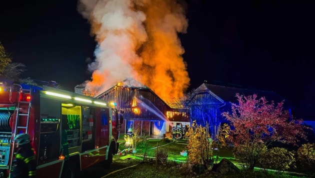 263 Feuerwehrleute waren am Samstag in Geretsberg (Oberösterreich) im Einsatz. Im Wirtschaftstrakt eines Bauernhauses war ein Brand ausgebrochen. Der Jungbauer (27) entdeckte das Feuer und konnte 22 Milchkühe und 14 Kälber noch retten. Der Sachschaden ist groß.