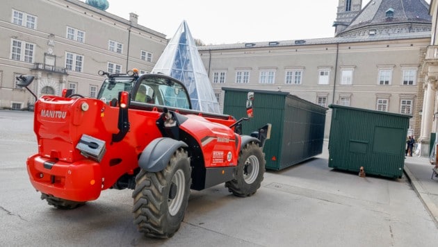 Der Advent wirft seine Schatten voraus: Die Aufbauarbeiten für den 51. Christkindlmarkt rund um den Salzburger Dom haben begonnen. Eröffnet wird in zwei Wochen.