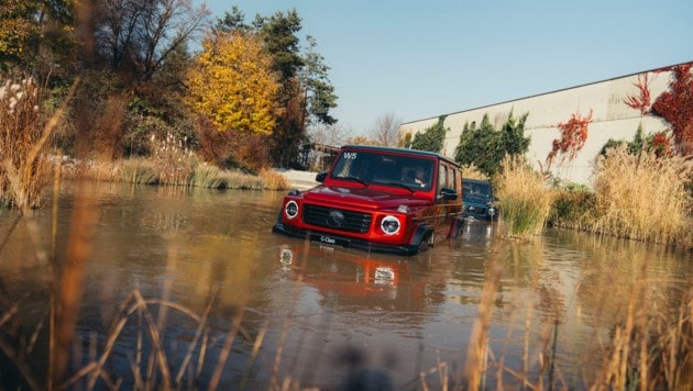 Die G-Klasse ist das Auto für den Weltuntergang. Was 1979 als „knorriges Arbeitstier“ begann, wie Instruktor Gerald Feichtinger sagt, ist heute ein ultraluxuriöses Auto. Es kann 100 Prozent Steigung erklimmen, durch 70 Zentimeter tiefes Wasser fahren, kippt bei 35 Grad Seitenneigung nicht um – und hat Massagesitze. Am Grazer Hausberg wird jedes Modell über 3500 Kilometer an Stock und Stein gejagt, bis es offiziell „Schöckl Proved“ ist.