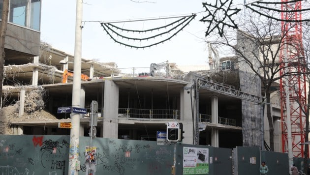 Viereinhalb Jahre nach dem Abriss des Möbelhauses Leiner auf der Mariahilfer Straße ist auch von den Plänen für ein Luxus-Kaufhaus auf der Mariahilfer Straße nichts mehr übrig: Der Abbruch bis hinunter zum ersten Stock ist vollendet, nun beginnen die Bauarbeiten ab dort wieder von vorne.