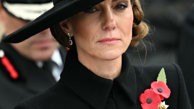 Während der Schweigeminute zeigte sich Kate, die einen breitkrempigen, schwarzen Hut sowie einen schwarzen Catherine-Walker-Mantel im Militärstil, den sie bereits vor zwei Jahren am Remembrance Sunday anhatte, trug, tief bewegt. Und sorgte wenige Augenblicke später selbst für einen Gänsehaut-Moment.
