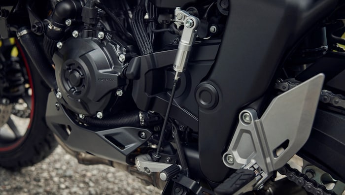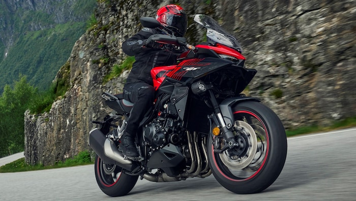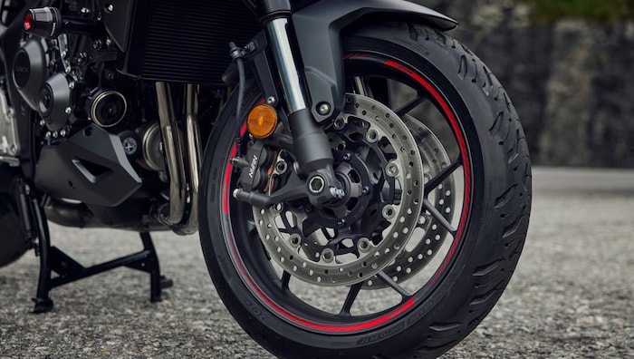 Die Bremsanlage von Nissin arbeitet mit zwei 310-Millimeter-Scheiben vorn und einer 240-Millimeter-Scheibe hinten. Auf den 17-Zoll-Alugussrädern sind Reifen der Dimensionen 120/70 ZR17 vorn und 180/55 ZR17 hinten montiert.