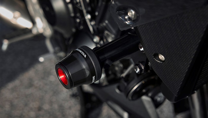 Eine USD-Gabel und eine Zweiarmschwinge mit Zentralfederbein sorgen für Stabilität und Komfort, die Dämpfer werden elektronisch geregelt: Die Showa-EERA-Steuereinheit nimmt permanent, innerhalb 15 Millisekunden nach der Berechnung, gezielte Anpassungen am Dämpfungsverhalten der Federelemente vor. Vier Federungsmodi stehen zur Auswahl.