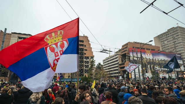 Mit einer menschlichen Mauer haben Hunderte Serben am Dienstag in ihrer Hauptstadt Belgrad gegen ein Bauprojekt demonstriert. Hinter dem Vorhaben steckt der Schwiegersohn von US-Präsident Donald Trump.