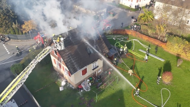 Gleich mehrere Feuerwehren mussten mit Atemschutz ausrücken, um die sich rasch ausbreitenden Flammen unter Kontrolle zu bringen. Mit vereinten Kräften gelang es schließlich, auch das Dach zu öffnen, um die dort befindlichen Glutnester zu erreichen und ein Übergreifen des Feuers auf die benachbarten Gebäude zu verhindern.