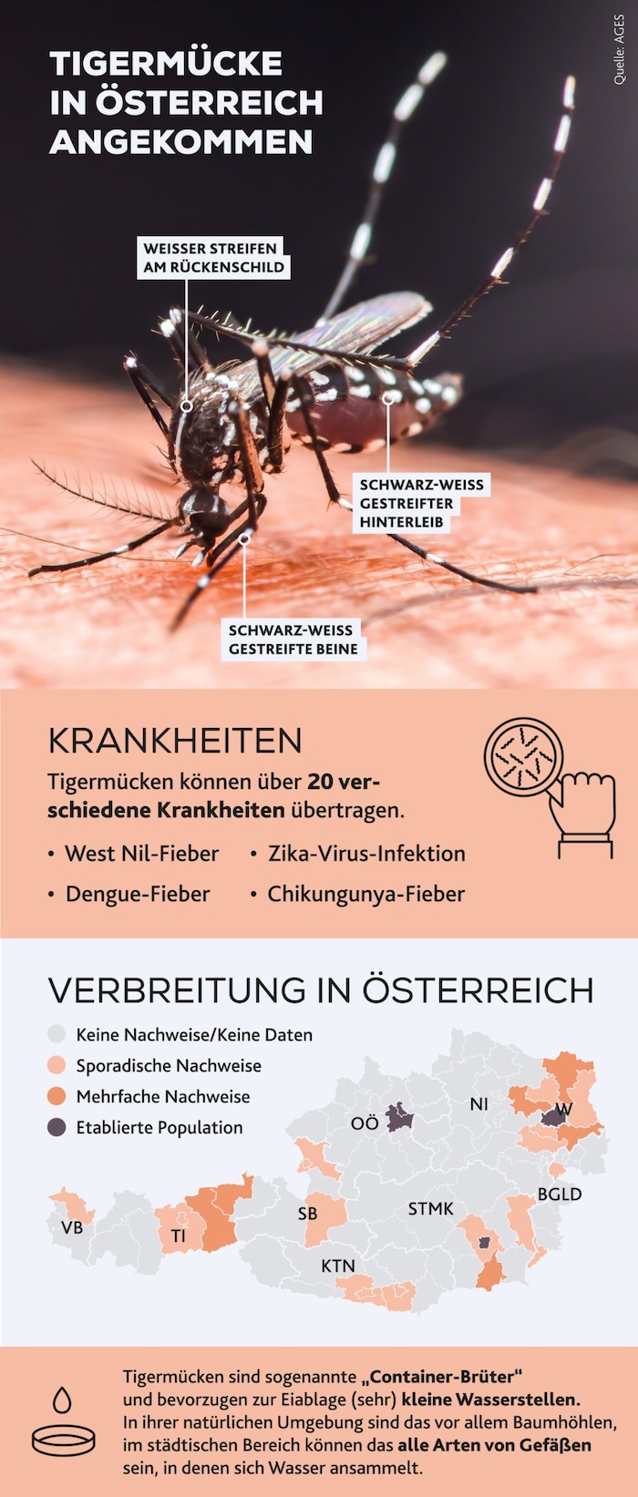 Infolge des Klimawandels breiten sich sogenannte „invasive Gelsenarten“, die man nur aus fernen Regionen kannte, vermehrt in Europa aus. So etwa die Asiatische Tigermücken, die mittlerweile in 16 europäischen Ländern und seit 2022 in Österreich in allen Bundesländern nachgewiesen wurde.