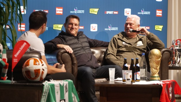 Wenn Andi Herzog und Toni Polster gemeinsam auf der Bühne stehen, bleibt sicherlich kein Auge trocken – die Bauchmuskeln werden auch noch ordentlich beansprucht. Die beiden Ex-Teamspieler sorgten beim Krone-Event in Deutschkreutz für zahlreiche Lachflashs. So stichelte Goalgetter Polster etwa gegen Herzog, dieser habe ein „typisches Radiogesicht“ und er verstehe nicht, warum er so oft im Fernsehen auftaucht.