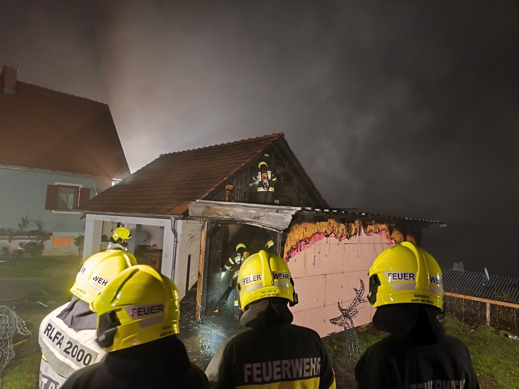 Der Sohn einer Familie aus Hart bei Graz heizte am Samstag im Carport den Werkstattofen ein – nichtsahnend, dass es dadurch in den Abendstunden zu einem Brand kommen sollte. Nach ersten Einschätzungen des Einsatzleiters der Feuerwehr dürfte die dahinterliegende Holzwand Feuer gefangen haben.