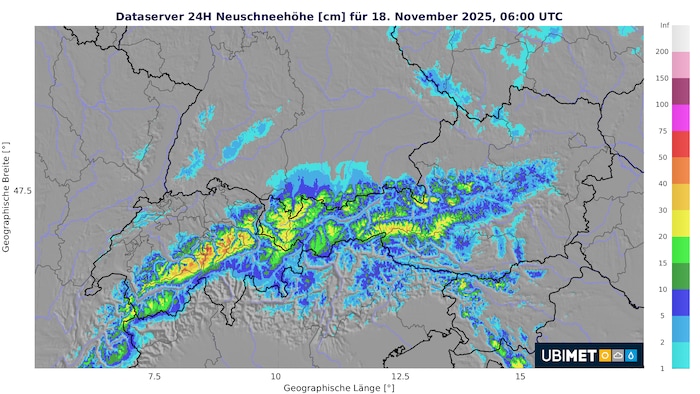 Niederschlag- und Neuschneeprognose für Dienstag: