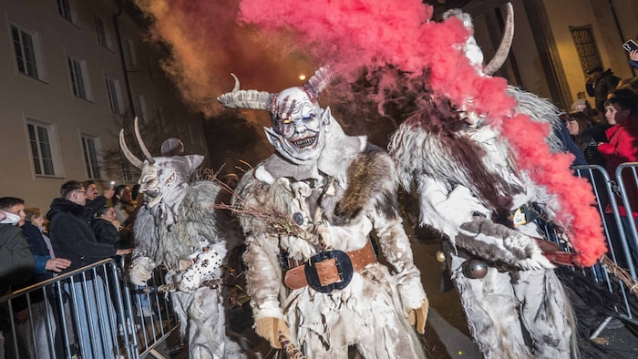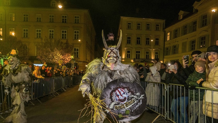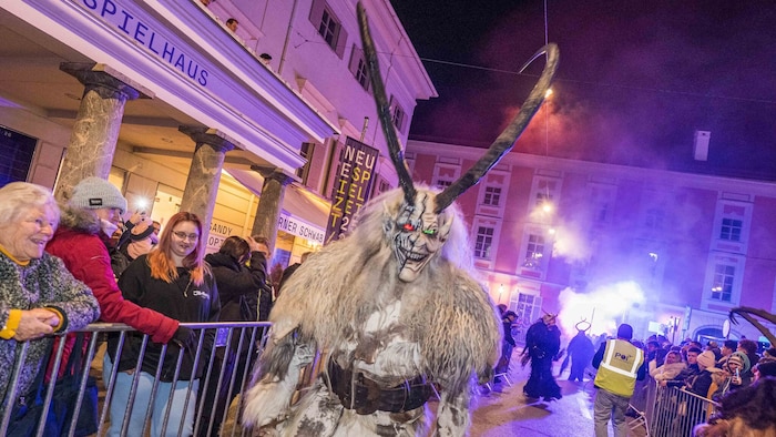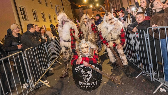 Aus sicherem Abstand verfolgten die großen und kleinen Gäste das Treiben der wilden Gesellen rund um Freiheitsplatz und Hofgasse, die für die Veranstaltung abgeriegelt waren. Zur Freude der jüngsten Besucher mischte sich unter die furchterregenden Fratzen auch ein gutmütiger Nikolaus.