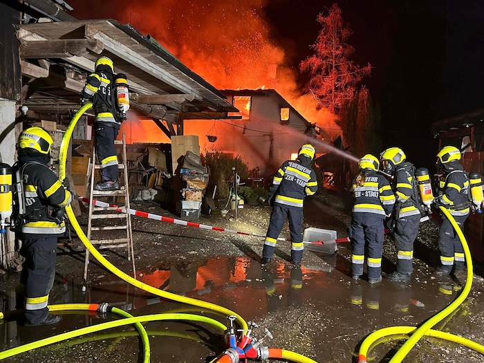 Als die erste Feuerwehr eintraf, stand ein laut Polizei unbewohntes Wohnhaus bereits in Vollbrand. „Die Zufahrt war erschwert, zusätzlich verhinderten herabgestürzte Stromleitungen einen Innenangriff – ein Löschangriff war daher nur von außen möglich“, schildert die Freiwillige Feuerwehr Liezen-Stadt vom Einsatz.