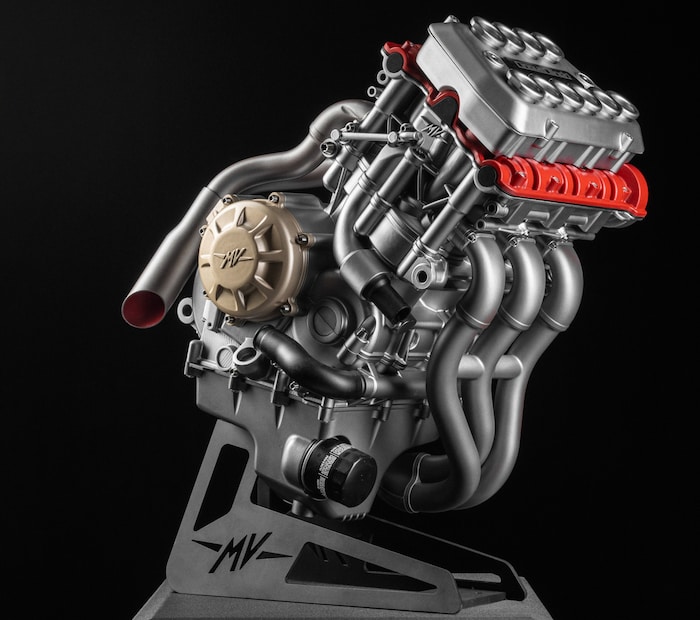 Trotz der hohen Leistungswerte soll der quer eingebaute Fünfzylinder unter 60 Kilogramm bleiben. Zudem kündigt MV eine Bauform an, die schmaler ausfällt als ein Reihenvierzylinder und kürzer baut als ein V4. Die Architektur erinnert an eine enge V- beziehungsweise gestaffelte Reihenanordnung. Der Motor kombiniert eine vordere Dreizylinderbank mit zwei versetzt dahinterliegenden Zylindern unter einem gemeinsamen Zylinderkopf.