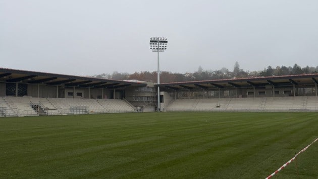 Das Flutlicht steht schon, auch der Rasen ist ganz frisch, wurde in den letzten Wochen verlegt. Nächsten Monat ist’s endlich so weit, das Sportclub-Stadion an der Alszeile baulich fertig. Am 2. Dezember dürfen sich die Spieler, zuletzt im September vor Ort, wieder ein Bild vom neuen „Wohnzimmer“ machen.