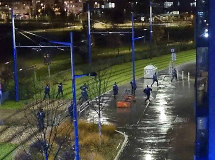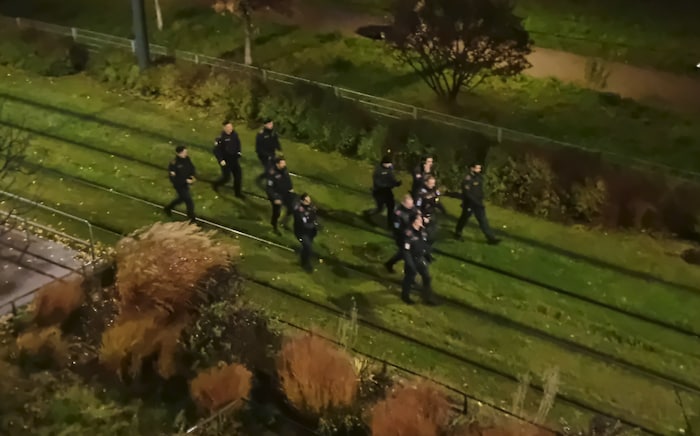 Bei dem Einsatz kam es allerdings zu einer Panne: Ein Polizeibus blieb im Rasen der begrünten Straßenbahn-Gleise stecken.