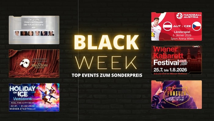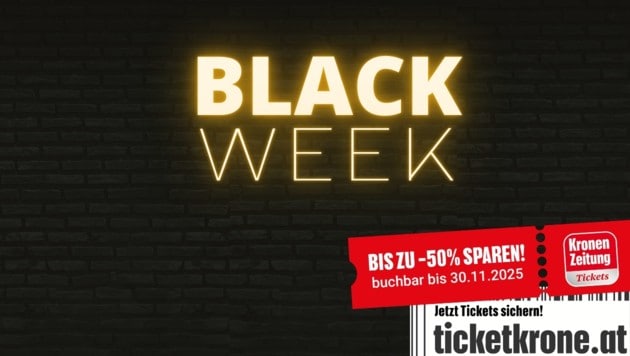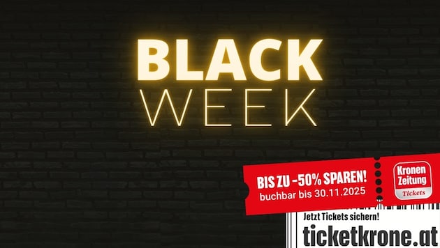 Wenn der November seine ersten frostigen Spuren hinterlässt, beginnt im Krone Ticketshop eine der attraktivsten Angebotswochen des Jahres: die Black Week. Sichern Sie sich attraktive Rabatte auf ausgewählte Events – buchbar bis einschließlich 30. November 2025 auf ticket.krone.at
