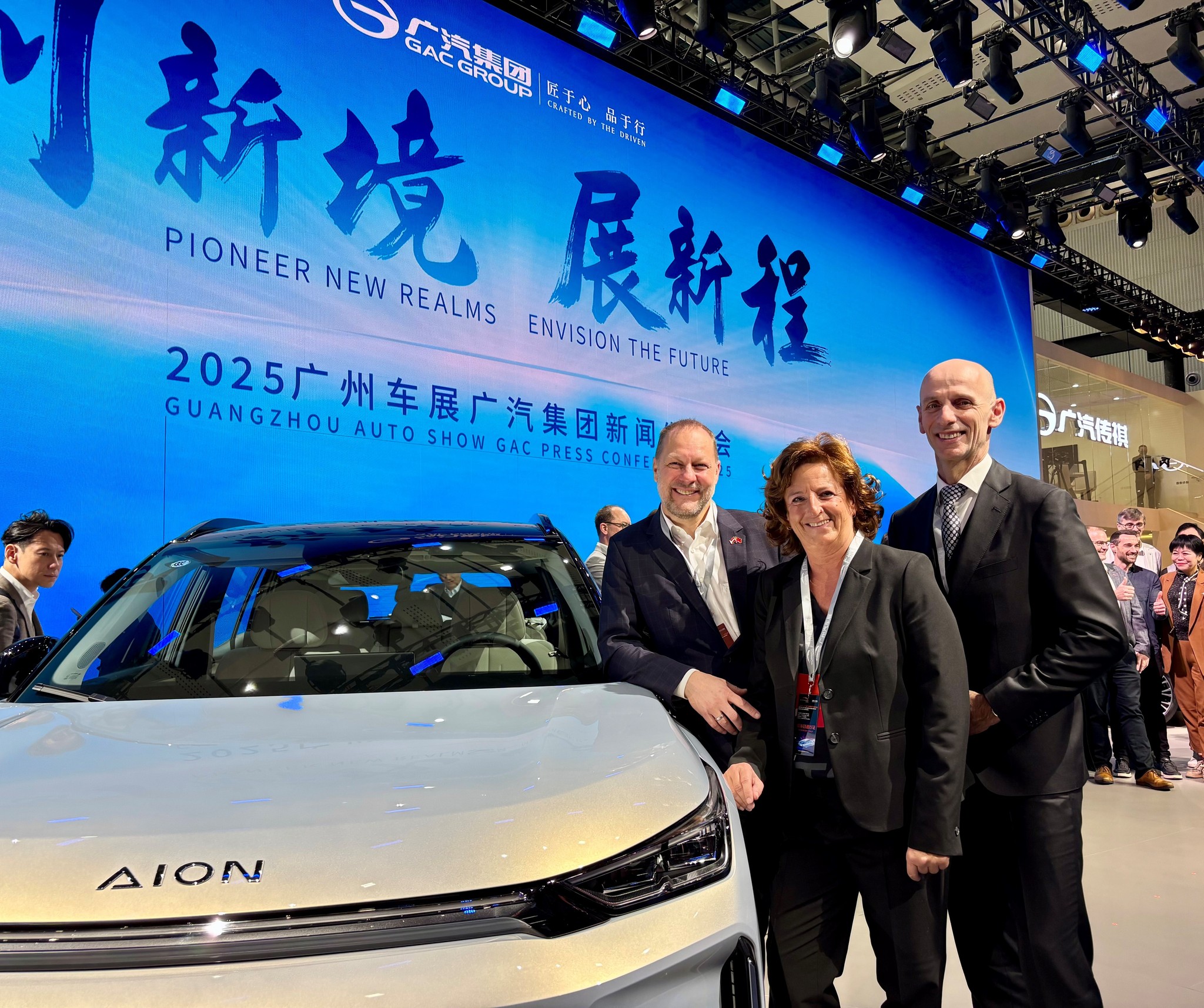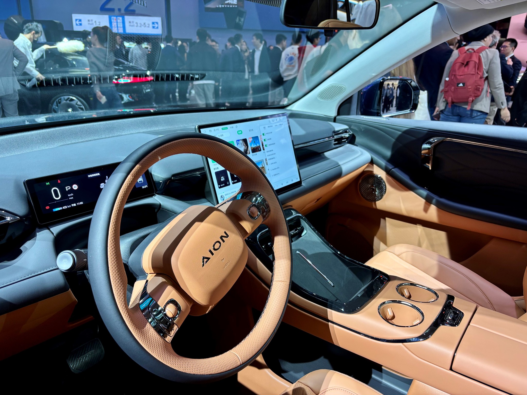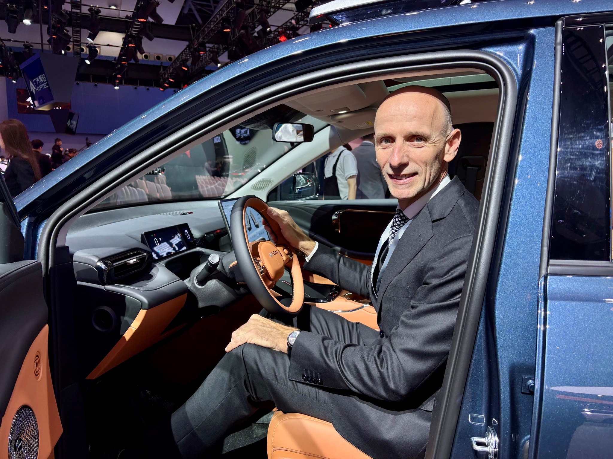Vor zweieinhalb Jahren habe man begonnen, das Netzwerk hier in China aufzubauen, jetzt trägt die Arbeit Früchte. Das Modell von GAC kann sich sehen lassen: Das E-Auto punktet mit einer qualitativen Innenausstattung und modernster Software. Hinter dem minimalistischen Design verbirgt sich enormes Know-how, von dem sich europäische Hersteller eine Scheibe abschneiden können.