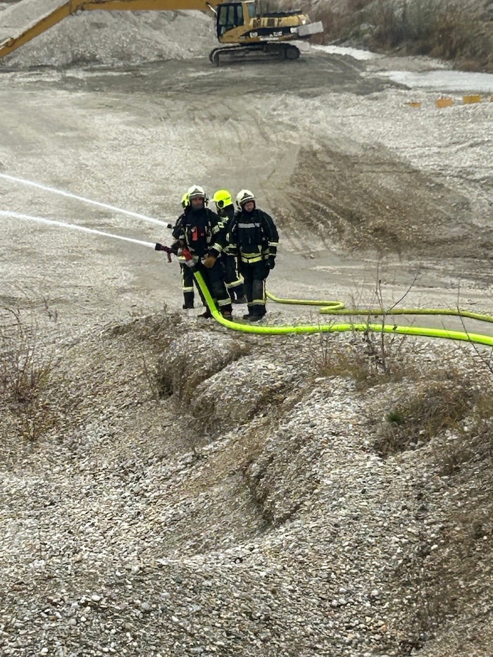 Beübt wurde einerseits ein Brand bei der Firma Pinetz und andererseits ein Quad-Unfall beim Schotterteich der Firma.