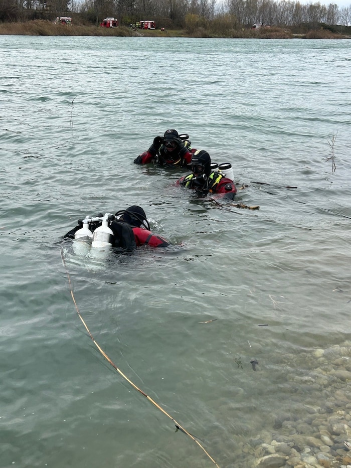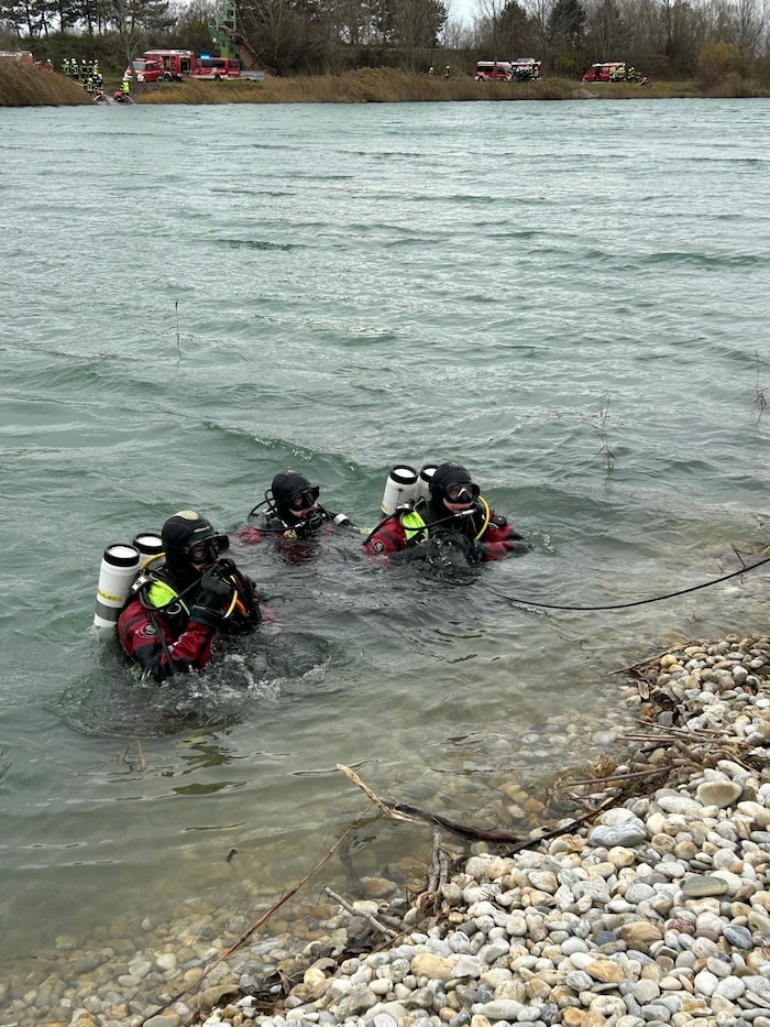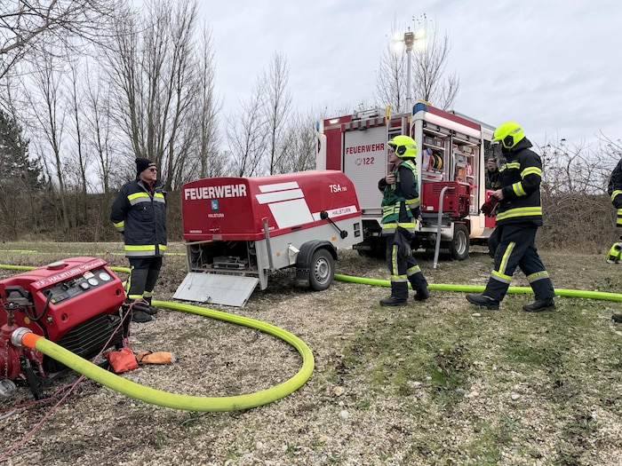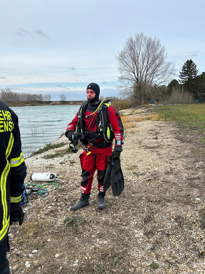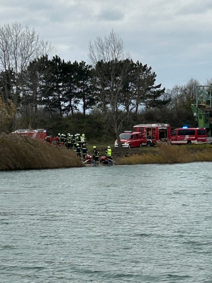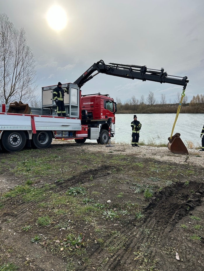 Simuliert wurden die Fahrzeuge durch Baggerschaufeln, die im Teich versenkt wurden. „So ein Teil wiegt rund 300 Kilo, so schwer ist ein Quad auch in etwa“, erklärte Einsatzleiter Thomas Bochdalofsky.