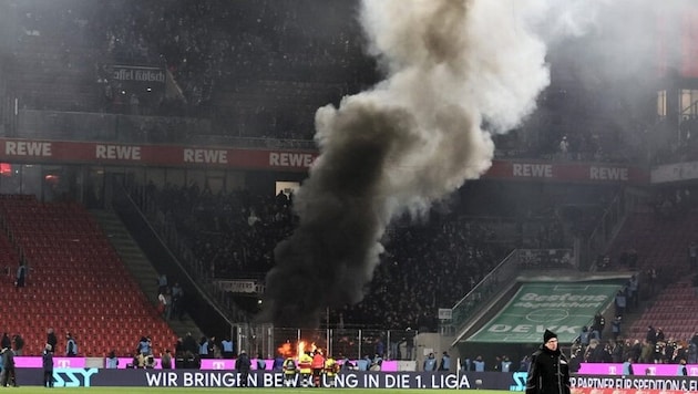 Und dann ging in Köln nach den besagten zwölf Minuten ein Pyro-Protest-Feuerwerk los!