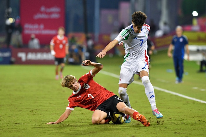 In front of FIFA President Gianni Infantino and Arsene Wenger, the Italians started with great momentum and pressed hard for the opening goal in the opening quarter of an hour. The ÖFB defense, weakened by the absence of Ifeanyi Ndukwe due to yellow card suspension, was not as solid as it had been in the tournament so far, and it was probably also due to nervousness. After just over a minute, Samuele Inacio was too indecisive with his shot. Thomas Campaniello shot just wide (3') and a volley from Dauda Iddrisa after an Inacio cross went just over (12').