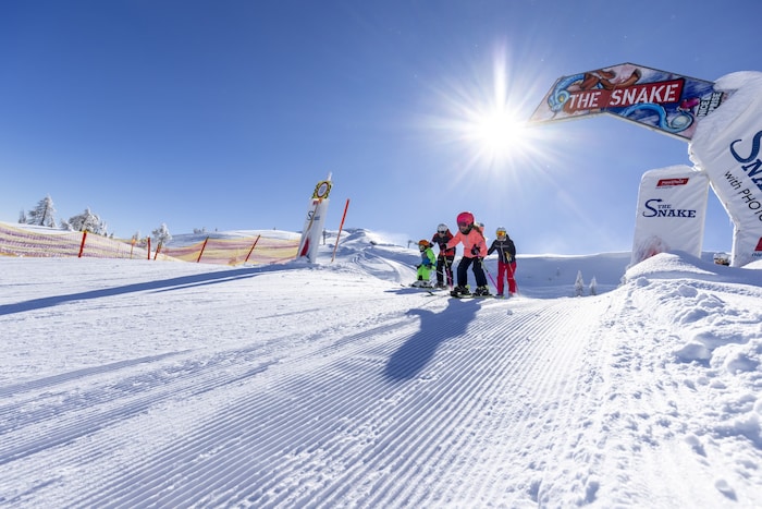 Für Kids wird der Winterurlaub am Nassfeld zum echten Abenteuer. Gleich vier gesicherte Kindergelände helfen kleinen Skistars bei den ersten Schwüngen, während größere Kinder auf den Funslopes „The Snake“ und „The Wave“ über Wellen, Sprünge und Steilkurven flitzen.