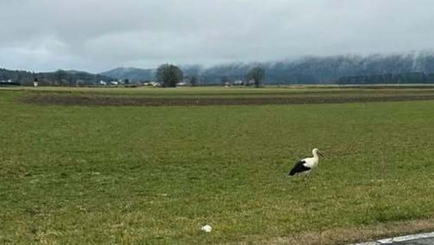 Von der Gruppe verlassen und nun auf sich alleine gestellt, ist ein Jungstorch in Eberndorf (Kärnten). Gestresst hat er nach Nahrung gesucht, deshalb wird er jetzt liebevoll versorgt.