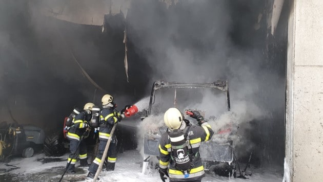 Starken Rauch nahm im Lesachtal in Kärnten ein 51-Jähriger wahr und schlug sofort Alarm: 107 Feuerwehrleute rückten zum Brand in einer Fahrzeughalle aus. Das Tor ließ sich durch die Hitze zunächst nicht öffnen, was den Löschangriff verzögerte.