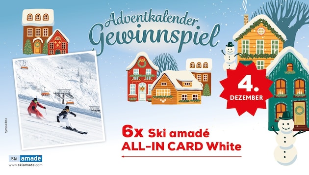 Der heutige Gewinn im „Krone“-Adventkalender sorgt für grenzenloses Skivergnügen in der Skiwelt Amadé. Wir verlosen je eine von sechs Ski amadé ALL-IN Card White. Wie Sie mitmachen können, erfahren Sie hier.