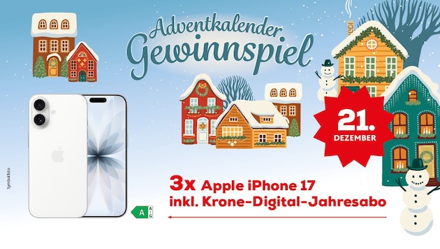 Im heutigen Fenster des „Krone“-Adventkalender finden Sie das iPhone 17 inkl. Krone-Digital-Jahresabo. Wie Sie beim Gewinnspiel mitmachen können, erfahren Sie hier.