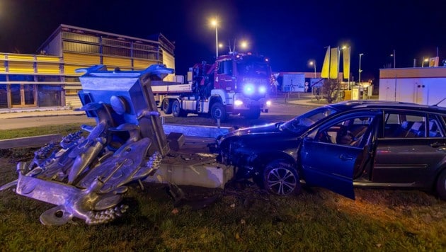 Ein kurioser Unfall beschäftigt derzeit die Polizei in Krems in Niederösterreich: Bei dem Crash wurde eine wertvolle Skulptur beschädigt. Die mutmaßliche Lenkerin wurde leicht verletzt und behauptet, gar nicht am Steuer gesessen zu sein.
