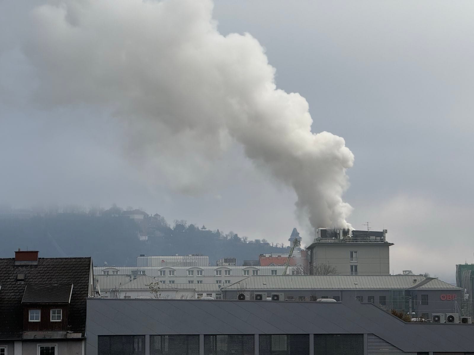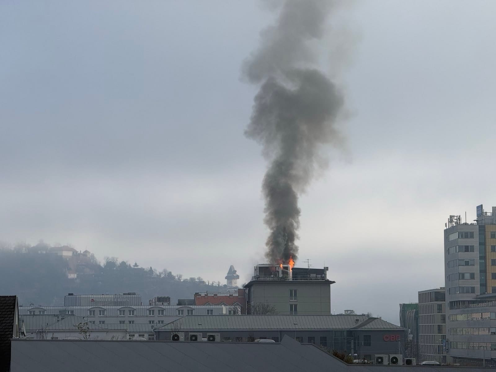 Eine weithin sichtbare Rauchsäule sorgte Dienstagvormittag im Bereich des Grazer Hauptbahnhofs für Aufregung. Das „Loftcube“ – ein Luxuszimmer am Dach – des Hotels Daniel stand in Flammen.