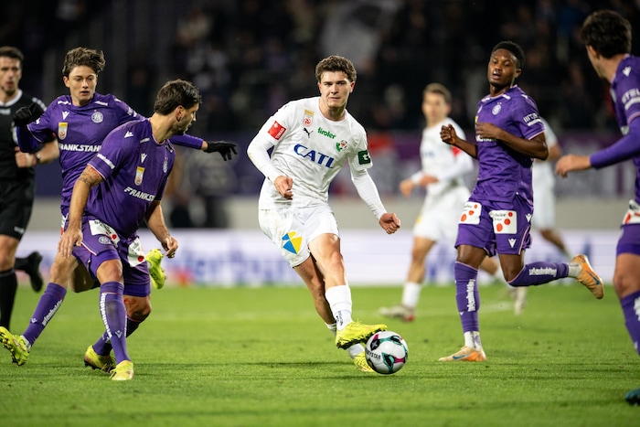 Die WSG, die anstelle des gesperrten Matthäus Taferner Moritz Wels nach hinten zog und im Sturm Ademola Ola-Adebomi aufbot, zeigte ihre breite Brust nach dem 3:2 in Salzburg von Beginn an. Die Tiroler bespielten mit mehr Ballbesitz die violette Hälfte, fanden aber nur selten die Lücke. Und wenn, war die Abwehr um Aleksandar Dragovic zur Stelle, oder ging der Ball daneben – wie beim Distanzversuch von Nikolai Baden Frederiksen (22.).