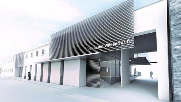 Die Wasserkaserne wird nach Plänen von Architekt Reinhardt Gallister „schultauglich“ gemacht. Auf der Stadtmauerseite öffnet eine Glasfront den Blick auf Wasserturm und Donau, großformatige Dachfenster geben die Aussicht auf den Braunsberg frei. Neben acht Klassenzimmern für 200 Schüler wird es Räume für Musik- und Kreativunterricht sowie Nachmittagsbetreuung und einen Mehrzwecksaal geben Gestartet wird der Schulbetrieb im Herbst 2026 als Außenstelle der AHS Bruck mit zwei Klassen.