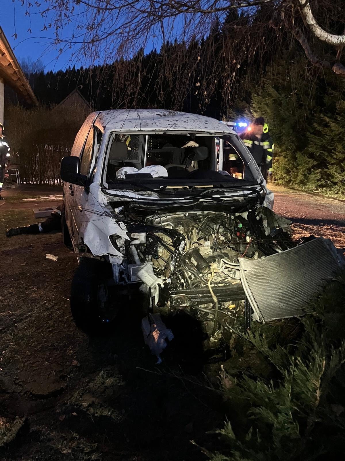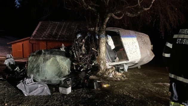 Dramatischer Unfall in der Nacht auf Freitag im steirischen Eibiswald: Ein 57-Jähriger stürzte mit seinem Kastenwagen über eine Böschung und krachte gegen einen Baum. Er konnte sich noch aus dem Unfallauto befreien, blieb dann aber neben dem Wrack liegen. Erst Stunden später konnte er geborgen werden.