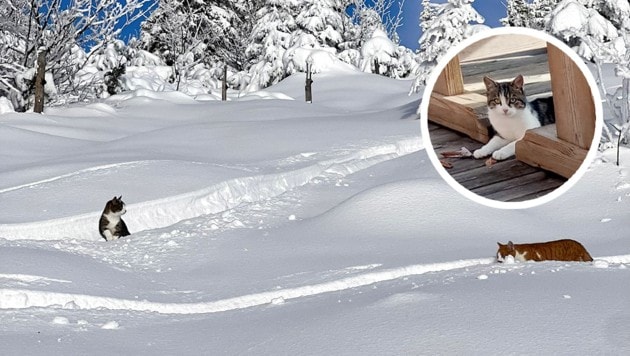 „Ich habe bis vor dem Wintereinbruch immer wieder die drei scheuen Katzen gefüttert“, sagt ein Herr aus dem Flachgau. Die Tiere hätten sich zuvor auf dem gesamten Almgebiet frei bewegt und Unterschlupf gefunden. Auf verschiedenen Hütten hätten die herrenlosen Katzen immer wieder Futter bekommen.