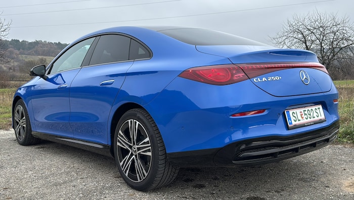 Der CLA-Basisstromer hat den gleichen Antrieb, speichert aber nur 58 kWh, das Topmodell CLA 350 bringt es dank zusätzlichem Frontmotor auf insgesamt 354 PS.