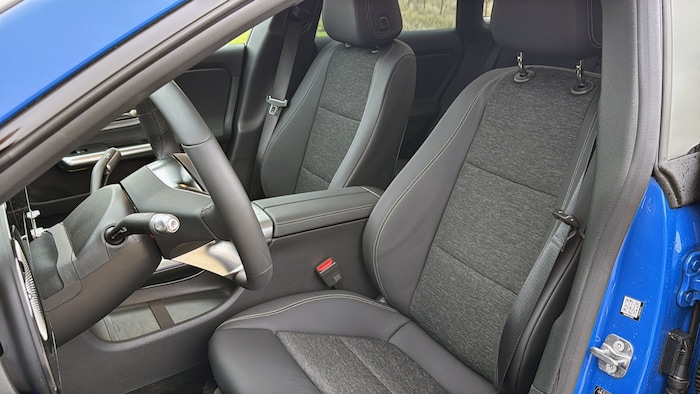 Das merkt man weniger an der Außenlänge von 4,72 Meter, als vielmehr am Innenraum. Der ist knapp geschnitten, sogar vorn. Angesichts der eingeschränkten Beinfreiheit hinten ist es nicht allzu weit hergeholt, von einem 2+2-Sitzer zu sprechen. Und der Kofferraum ist mit 405 Liter (VDA) satte 55 Liter kleiner als beim Vorgänger. Im Fall des Elektro-CLA kommt da noch ein 101 Liter (ausgelitert) großer Frunk dazu. Bei den Verbrennerversionen (ja, den CLA gibt es nicht nur elektrisch) hat man vorn nur 1,5 Liter – Hubraum.