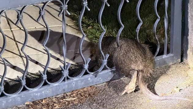 Mitten im Ortsgebiet hatte das Tier in einer Garageneinfahrt eines Einfamilienhauses versucht, durch die schmalen Gitterstäbe eines Einfahrtstores zu schlüpfen. Der Plan ging jedoch gründlich schief: Das Tier blieb stecken und konnte weder vor noch zurück. Die Bewohner alarmierten die Feuerwehr.