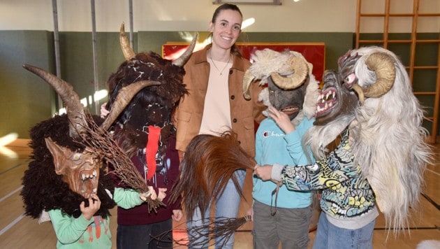Katharina Pertl, Direktorin an der Volksschule Lessach, freut sich: „Sie waren total eifrig.“ Auch absolute Profis, die selbst schon einer Krampus-Pass angehören, sind in den Reihen ihrer Kinder dabei.