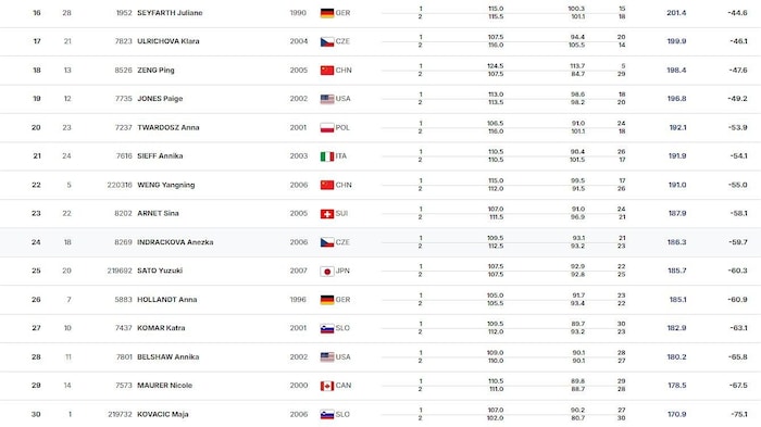 Weltcup-Titelverteidigerin Nika Prevc durfte nach ihrem Sieg in der Qualifikation nicht an den Start gehen. Die Falun-Siegerin wurde wegen regelwidrigen Ski-Materials aus der Wertung genommen.